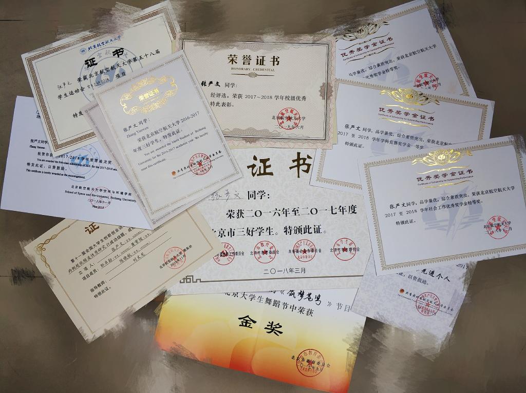 除此之外,张严文同学还积极参加员工工作、志愿服务及文体活动,在实践中不断提升自身综合能力:大学三年担任1630大班学习委员、30系员工会学习部部长、副部长等职,帮助同学们筛选学习资料、组织串讲、模考;在全国性在线平台主讲行星科学科普课程;参加北京市老员工舞蹈节,获金奖。