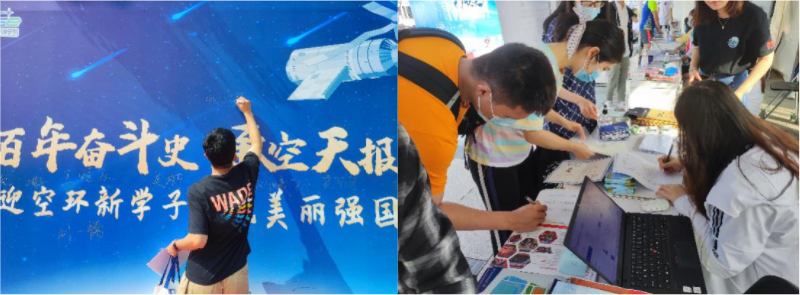 迎新当日,沙河校区“世纪之声”广场上,空环志愿者早早到场,身穿院服在公司展位迎接新生,“空小环”也为新生们准备了充分的迎新物资,除必要的防疫物品外,还给大家贴心提供了手提帆布袋、院系文化衫、学业管理“160本”、空环钥匙扣等伴手礼。新生在公司展板上签名,公司的辅导员和志愿者们为新生办理报到手续。