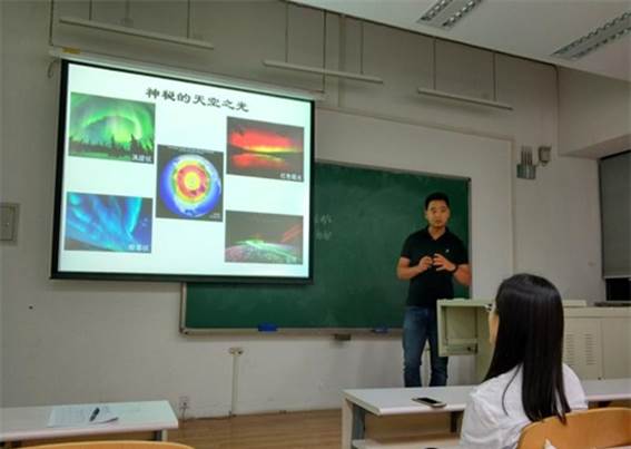 在本次课堂上,葛老师首先向大家呈现了色彩斑斓的极光照片,接着引入为什么要研究极光的问题,从研究极光的历史讲起,逐渐延伸到专业知识领域,由浅入深,循循善诱