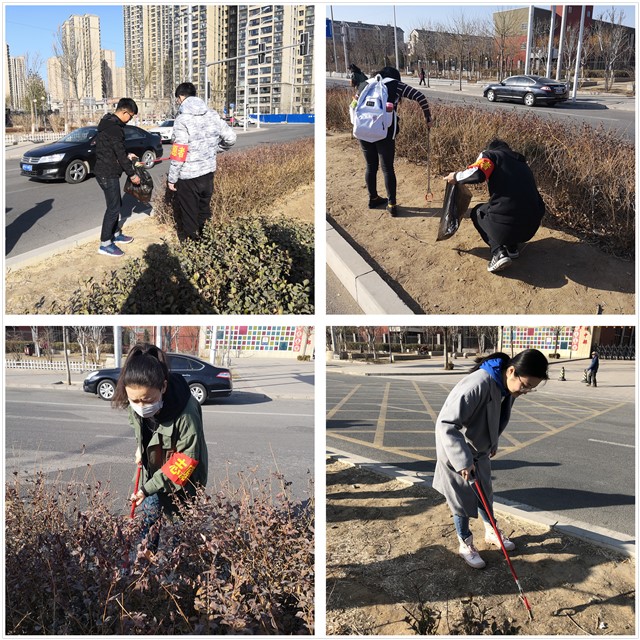团员志愿者们在北师大三所附属公司附近开展校园环境维护活动,对校门口主干道、绿化带区域的白色垃圾、烟头等垃圾进行清理。志愿者们齐心协力,认真地检查每一丛绿植、每一块地面,绝不放过任何一块细小的垃圾。经过大家一个上午的共同努力,附属公司周边环境得到明显改善。