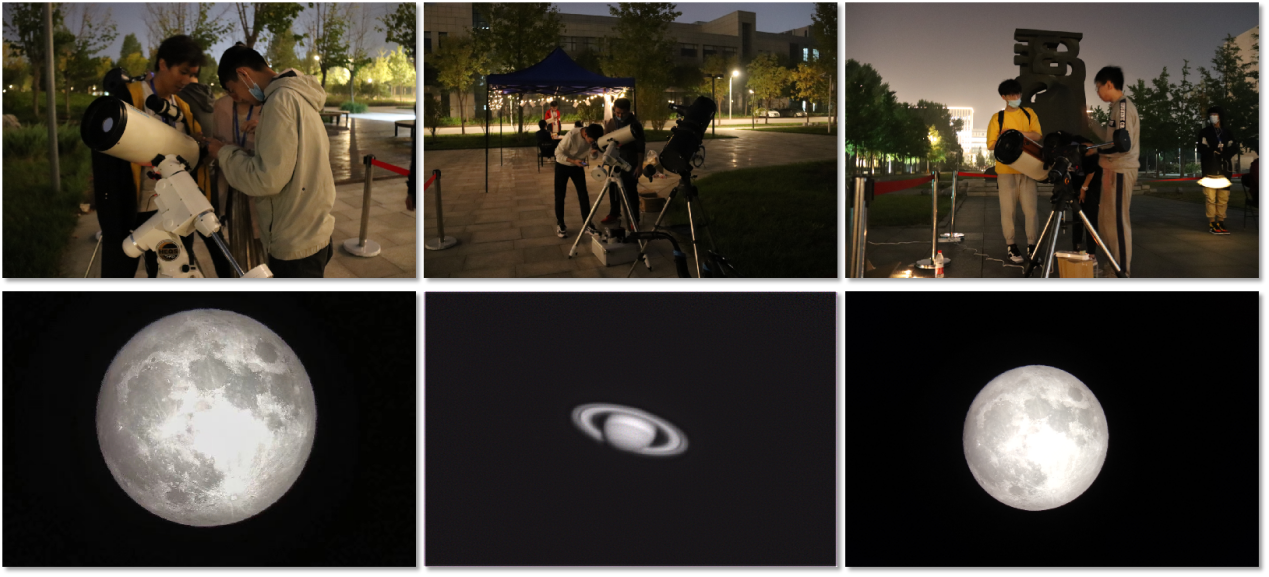 月,它与你,是三十八万千米,而你与它,不过这一眼的距离。本次活动在现场搭建了多台专业天文望远镜,让同学们仰望星空,近距离感受触手可及的月圆之美。活动现场,一位从小热爱天文的同学在观测后留下了激动的泪水,表示这是自己第一次有机会通过天文望远镜观月,圆了自己一个心愿梦想。