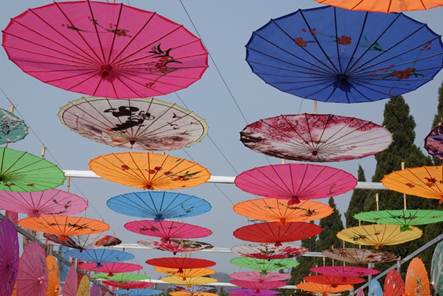 风车节吸引了大量市民前来参观,穿过七彩的油纸伞区,我们来到大佛下面,聆听数不清的风车在风中的奏鸣曲。
