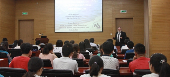 聘任仪式后,Aurbach教授作了题为“Water Desalination by Capacitive De-Ionization(CDI): Limitations and new Oppotunities”的学术报告,对电容器脱盐的原理、现状及未来发展进行了全面介绍,介绍了相关研究成果,并与到场的空间与环境公司师生进行亲切交流与探讨。