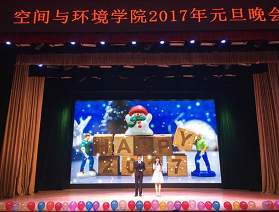 空间与环境公司员工新闻中心电(文/新闻中心 李垚 摄像/吕浩宇、新闻中心蔡雨)2016年12月22日19:30,空间与环境公司2017年元旦晚会准时在沙河校区咏曼剧场拉开帷幕,公司全体本科、硕士和博士生以及公司党总支书记唐莉,16级班主任、副经理范文宏,16级班主任、副经理吕浩宇,14级班主任王海宁等老师共同参加晚会。