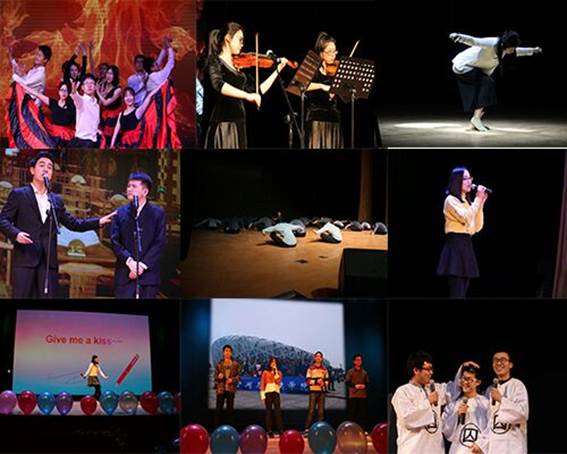 接下来本科、研究生同学分别为大家献上了歌曲、舞蹈、相声、小提琴演奏及小品,演出形式多样,共同为大家呈现了一场精彩的演出。其中由大一21名同学组成的舞蹈队为大家带来了一段自创的现代舞《顾》,一首经典歌曲《睡在我上铺的兄弟》配合同学们轻柔的舞姿,共同唤醒了观众的青春,勾起了观众对美好校园生活的回顾。本舞蹈在刚刚结束的北航艺术展演“艺韵青春风采北航”综艺专场活动中荣获《最具表现力》奖。