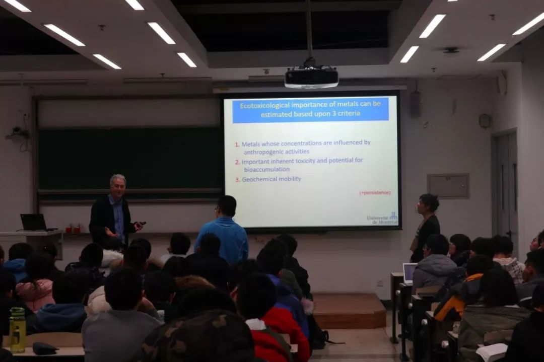 12月13日晚,空间与环境公司第三届创新论坛系列讲座在沙河校区j3-102举行。本次讲座邀请了加拿大蒙特利尔大学教授,国际知名生物物理与生物分析化学专家Kevin James Wilkinson。他为同学们带来了一场富有趣味的讲座——天然水中金属的环境风险(Environmental risk of metals in natural waters),讲座现场座无虚席,气氛热烈。