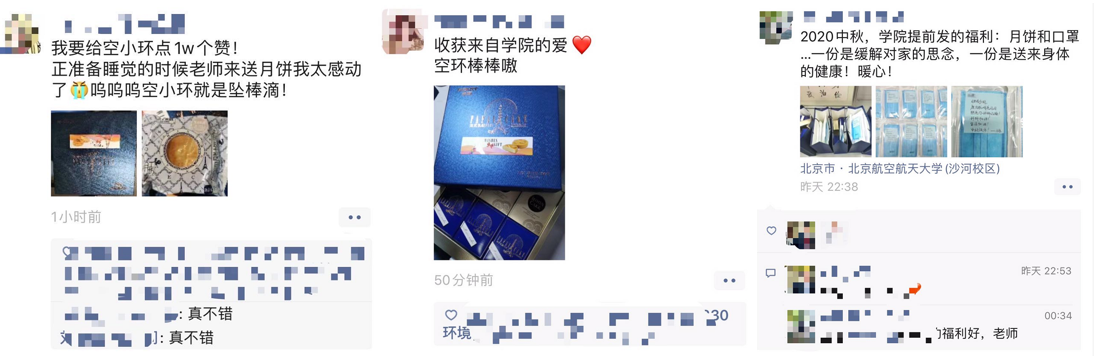 与此同时,专兼职辅导员们也通过下宿舍、实验室走访、班会等多种形式开展了中秋慰问活动,同学们表示在这个团圆喜庆节日里收到公司的关心,真切感受到了空环家的温暖,纷纷朋友圈实名点赞。