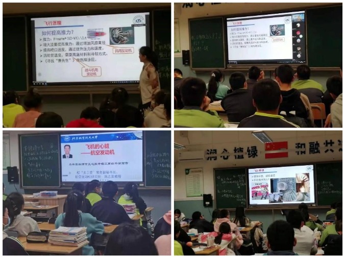 陈志英教授为同学们做讲座,陈教授主要从飞行原理、飞行特性与空天之梦三个方面对飞机的心脏——航空发动机进行了讲述,结合高中所学知识,通过视频讲解与航模展示的方式,生动地阐明了飞行原理,科普了速度、高度、航程、航时、载荷与隐身特性等战机特性。随后,陈教授简述了我国航天工业的发展历程,描绘了我国一代代空天梦的实现,表达了对所有高三员工高考取得好成绩、志在蓝天、志存高远的美好祝福。