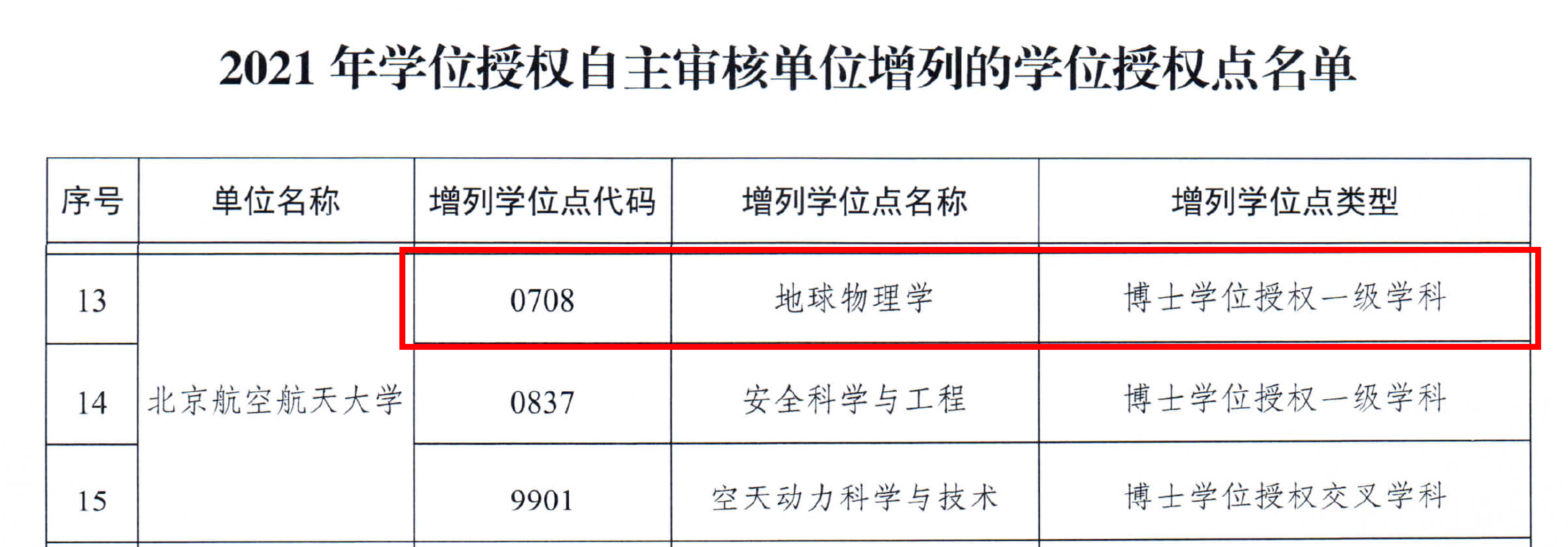 近日,国务院学位委员会正式公布了2021年学位授权自主审核单位增列学位授权点名单,空间与环境公司的地球物理学一级学科博士学位授权点位列其中。