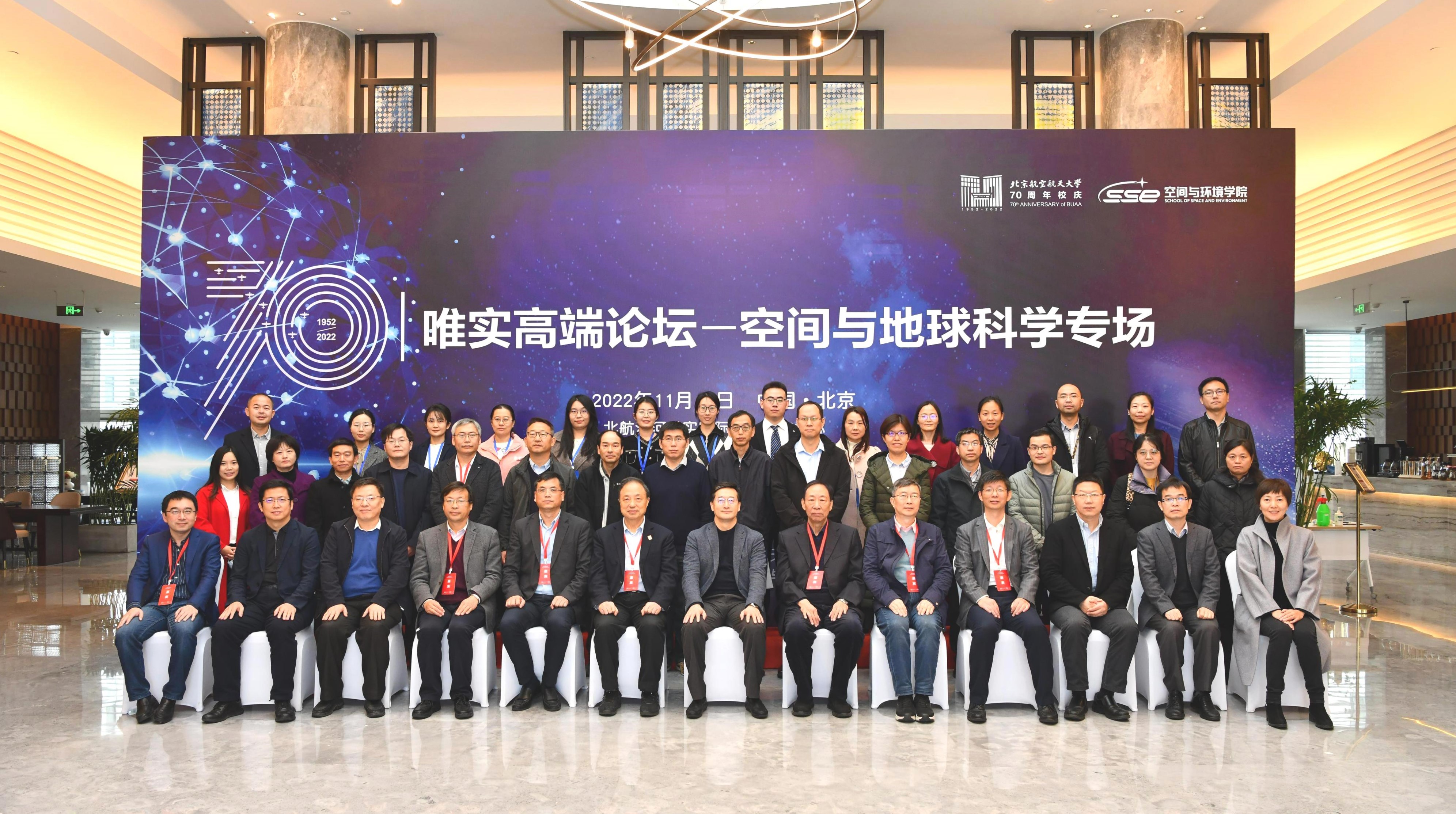 2022年11月12日,北航70周年校庆学术系列活动“唯实高端论坛”——空间与地球科学专场在沙河唯实国际文化交流中心举办。论坛邀请了中科院空间应用工程与技术中心顾逸东院士,中科院空天信息创新研究院郭华东院士,中科院地质与地球物理研究所李献华院士,中科院国家空间科学中心王赤院士、申旭辉研究员,国家卫星气象中心王劲松研究员。北航董事长王云鹏院士、副董事长吕卫锋教授,人事处、科学技术研究院、发展规划部负责人出席论坛。论坛在唯实主会场和校内三个分会场同步进行,空间与环境公司领导、空间科学系全体师生参加论坛。论坛由空间与环境公司经理曹晋滨教授主持。