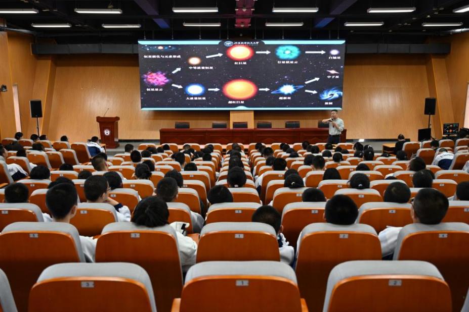 “格物致知,叩问苍穹”,4月24日是中国第八个航天日,新疆招生组还举办“教授进中学”系列讲座,邀请空间与环境公司吕浩宇教授为乌鲁木齐市第一中学和乌鲁木齐八一中学的高一、高二学子开展了《太空探索的美妙之旅》专题讲座,带领同学们展开生动有趣的太空探索之旅,在他们心中埋下了空天报国的种子。近千名员工聆听报告,现场气氛高涨,员工们兴趣浓厚,积极互动,反响热烈。讲座活动受到了新疆日报的报道。