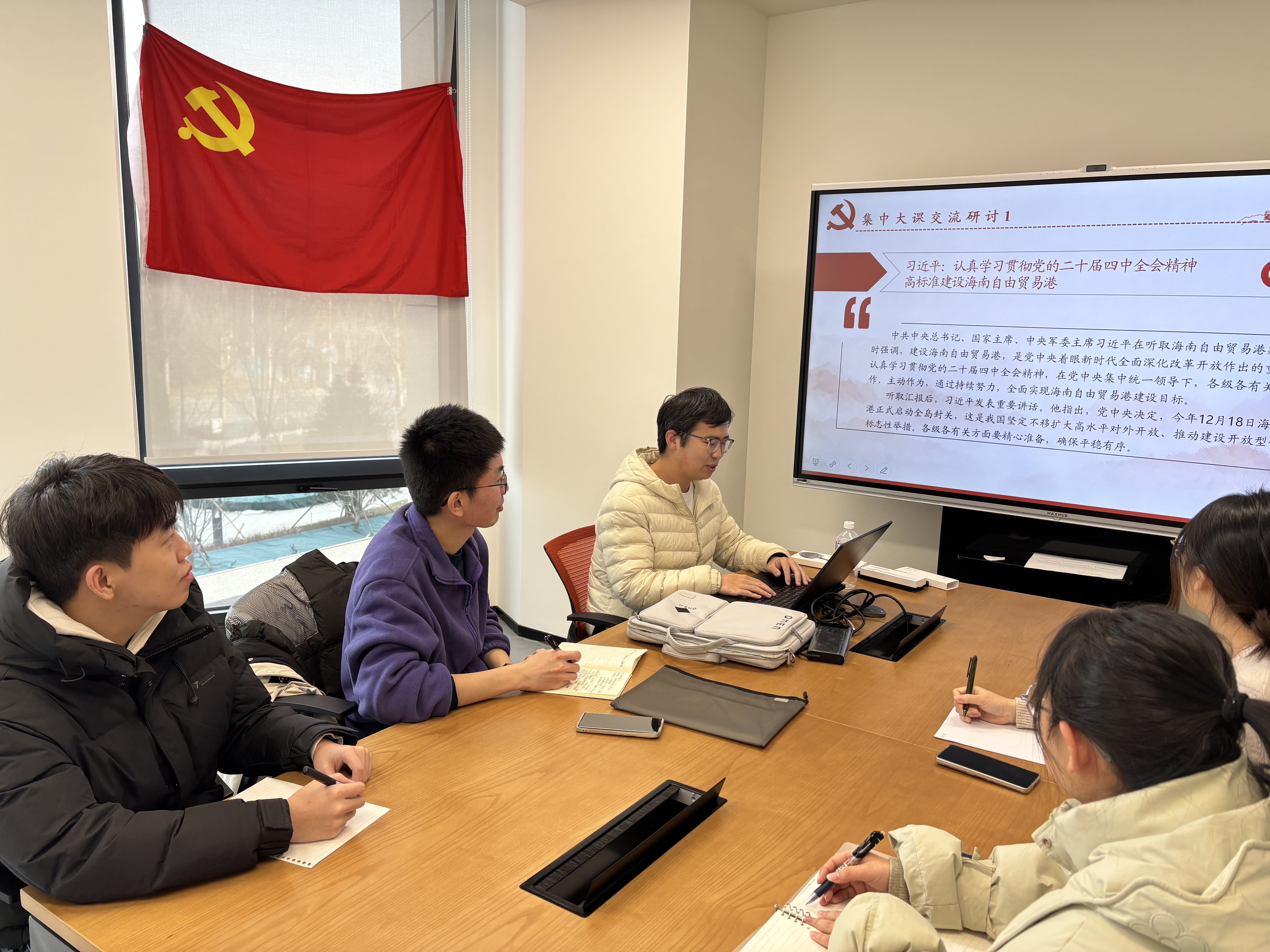 交流研讨环节,支部党员紧扣国家重大战略举措——海南自由贸易港全岛封关运作这一时政热点,结合导航学科专业特色展开深度研讨。大家一致认为,12月18日正式落地的海南自贸港全岛封关运作,是我国新时代扩大高水平对外开放的标志性事件,其“一线放开、二线管住、岛内自由”的政策创新,既是重大体制机制突破,更是推进中国式现代化、助力中华民族伟大复兴,为青年科技工作者投身国家需求、施展专业所长搭建了广阔平台。