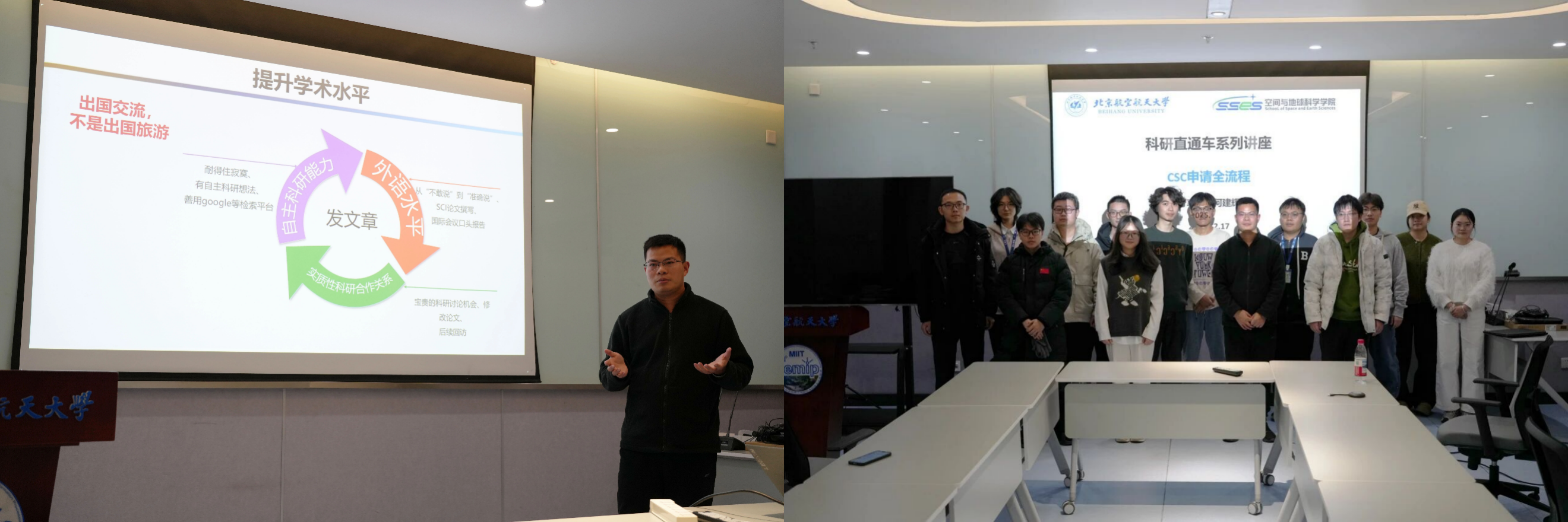 为助力学子明晰科研路径、树立学术标杆、厚植公司优良学术氛围,北航利来国际研究生会精心策划并举办三期“科研直通车”系列学术讲座。活动特邀公司优秀青年教师代表与研究生代表担任主讲人,聚焦论文发表、CSC申请、文献管理等科研核心环节,通过师生双重视角的实操分享与经验传授,为全院学子科研成长保驾护航。