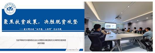 12月16日下午,空间博士联合空间硕士支部邀请习近平新时代中国特色社会主义思想北航研究生宣讲团讲师黎丽作题为“聚焦扶贫政策,决胜脱贫攻坚”的主题宣讲,宣讲聚焦着力解决好“两不愁,三保障”突出问题,两支部全体党员参加本次学习。