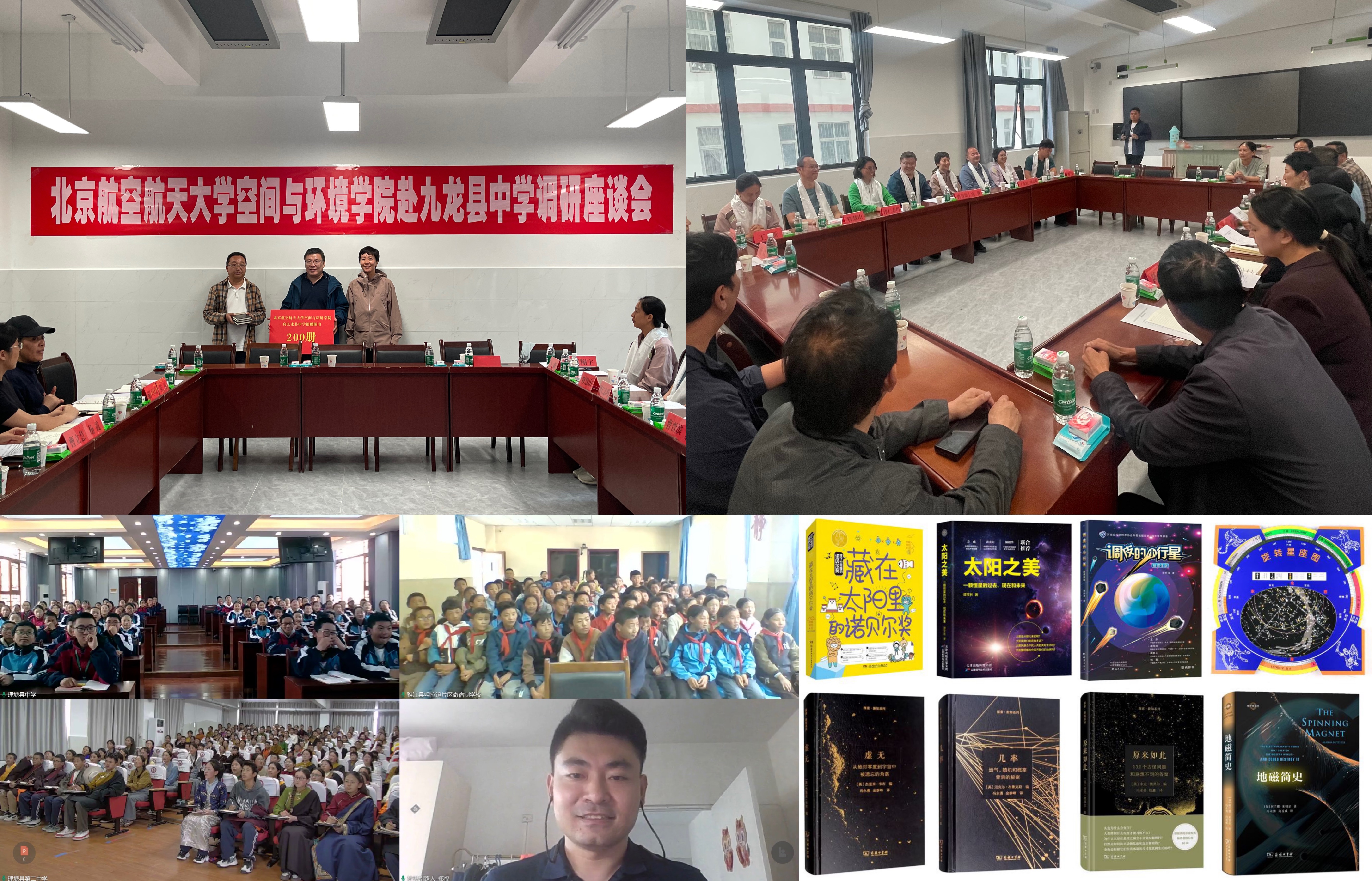 团队集体前往九龙县中学进行调研,并与九龙县人民政府、甘孜州科协及九龙县中学相关负责人进行现场座谈。会上,与会人员就九龙县中学基本情况、公司帮扶活动进展及未来共建合作意向等进行深入交流。今年6月,公司导航系郑福副研究员面向甘孜州理塘县第二中学等偏远地区公司员工开展了《“数”说北斗》线上科普讲座。本次甘孜行中,公司向九龙县中学捐赠空间科学、天文学相关科普图书200本。此次图书捐赠活动是继线上科普讲座后,公司再次以实际行动助力偏远藏区教育扶贫。未来,公司将会持续对口甘孜州偏远地区公司开展各类帮扶科普活动,鼓励和动员公司教师积极投身科普,为巩固藏区脱贫成果和推进乡村振兴贡献力量。