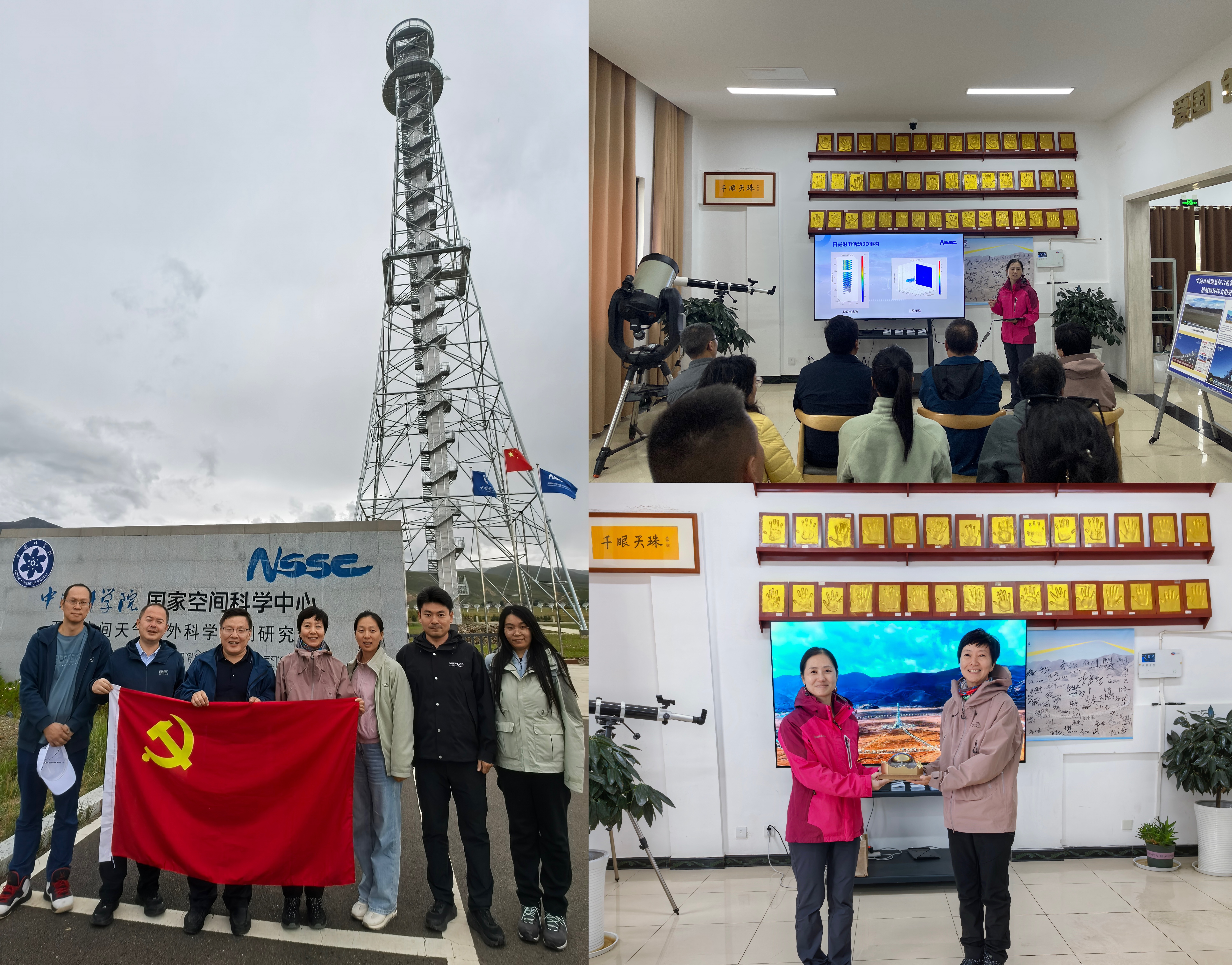 此外,团队还集体前往中国科公司国家空间科学中心亚丁空间天气野外科学观测研究站,实地参观了子午工程二期“圆环阵太阳风射电成像望远镜”(千眼天珠),在站专家为大家详细介绍了望远镜的工作原理、应用目标、重要成果及发展规划等内容,并赠送千眼天珠纪念品。大家近距离感受到国之重器的震撼,更加坚定了开拓创新、努力进取、扎扎实实为国家科技进步和创新发展做出贡献的决心。