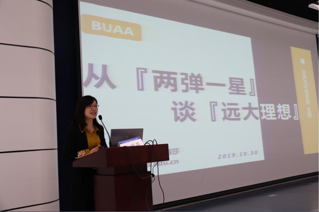 报告中,付丽莎老师从何为“远大”这一问题切入,带领大家穿越到六七十年前一穷二白、百废待兴的新中国,共同回顾了“两弹一星”战略决策提出的国内外形势,通过讲述邓稼先、钱三强、彭桓武、王淦昌等“两弹一星”元勋为共和国国防科技事业无私奉献的故事,让大家感受到理想信念时代上的战略性、超越性和目标上的无私性、大局观,引导大家树立并实践远大理想。在新中国成立70周年之时开展主题教育,就是要进一步筑牢理想信念,不忘历史,重整行装再出发,在面临多方风险和严峻挑战的新时代中,要不断增强守初心、担使命的思想和行动自觉,坚定理想信念,主动谋划未来。