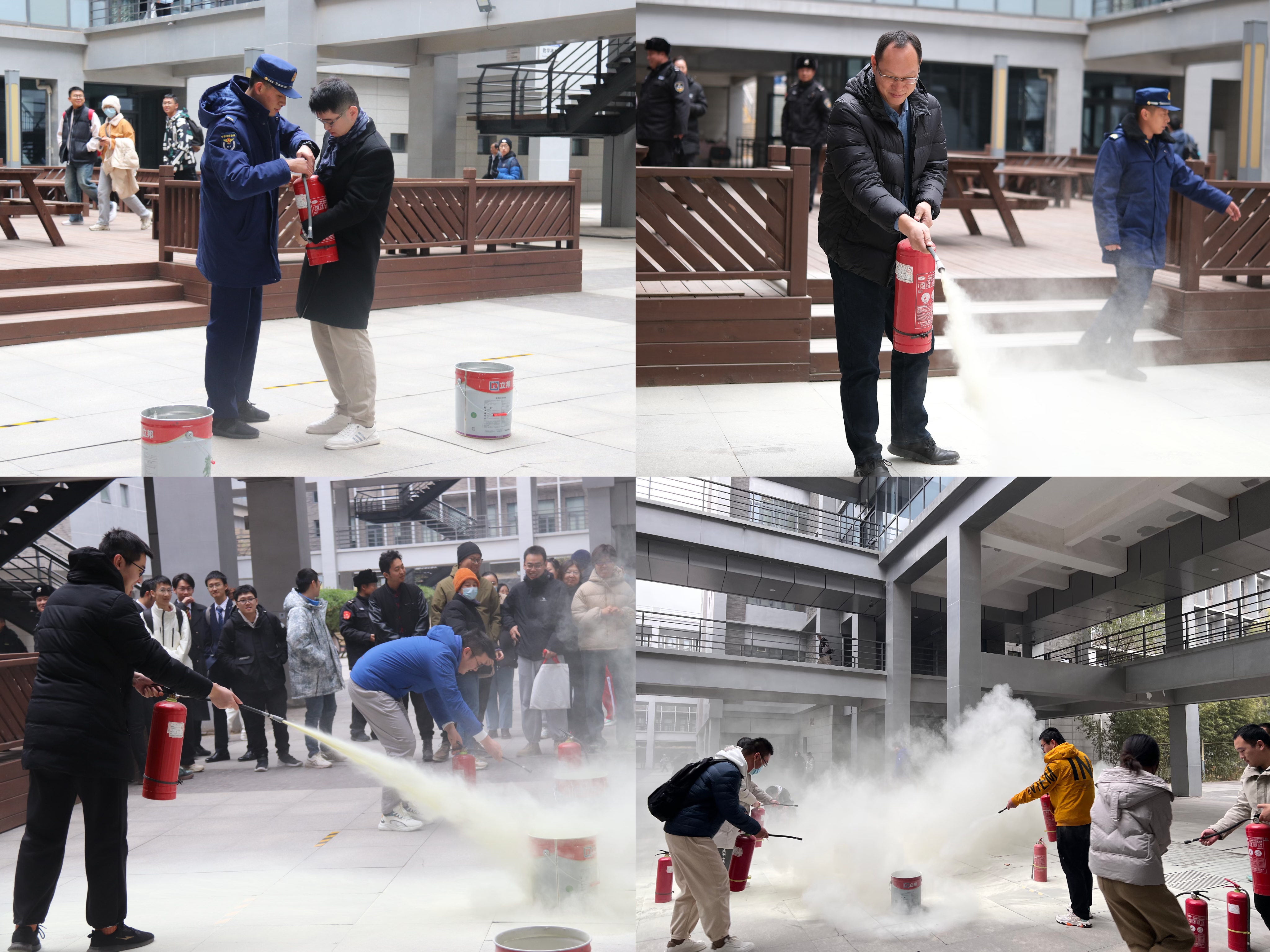 在第二个培训环节,消防救援站队员们向师生进行了灭火实操教学。全院师生积极学习了如何正确使用灭火器,掌握快速灭火的方法。