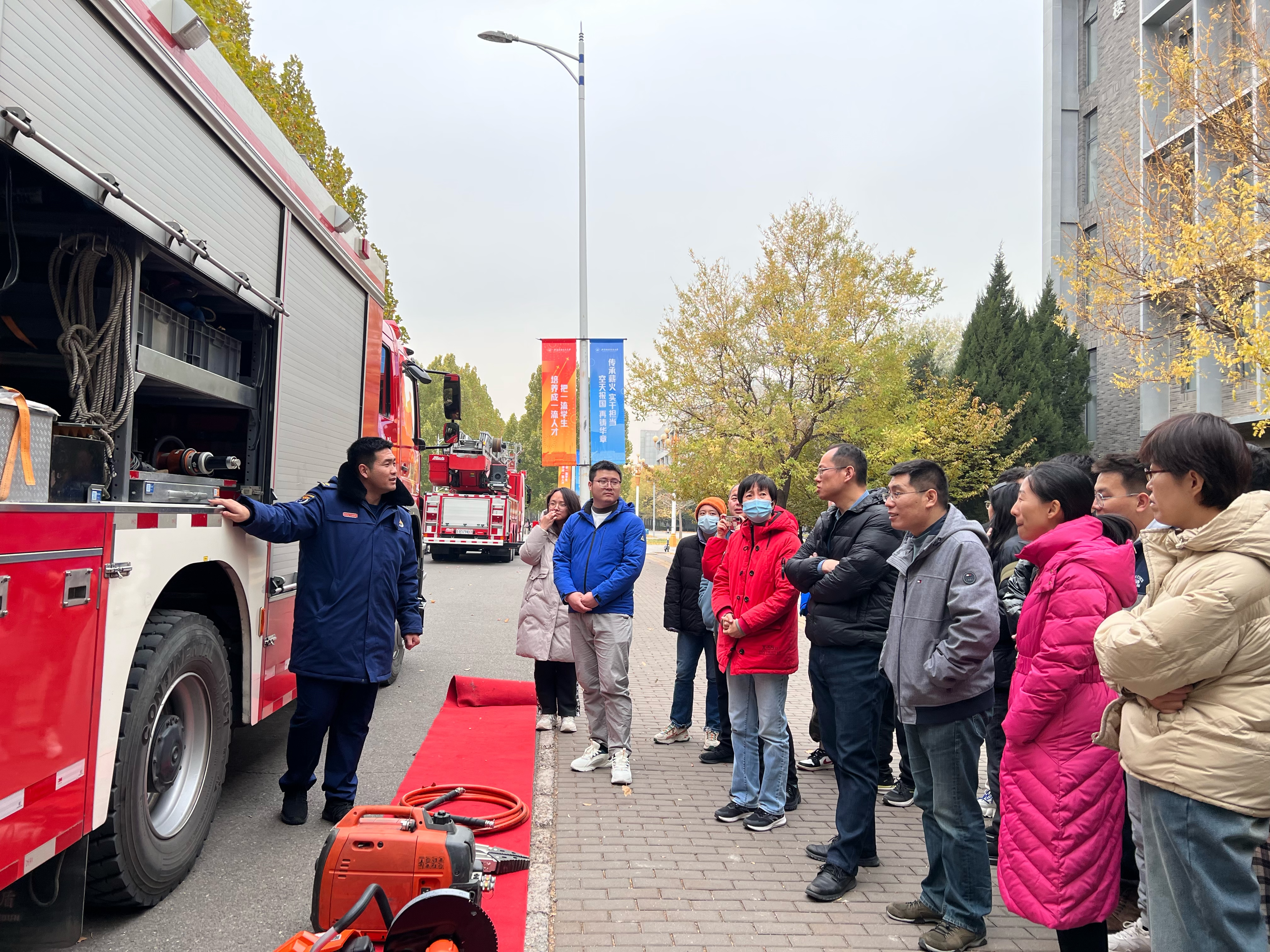2023年11月9日是第32个全国消防日。为加强消防安全教育,提高公司师生消防安全意识、火情处置能力及应急处置能力,落实公司“119”消防安全宣传月活动要求,11月15日,空间与环境公司在公司安全保卫部、总务部物业的大力支持下,邀请昌平区沙河消防救援站的专家和队员为全院师生做“防患未‘燃’,生命至上”主题消防安全培训,培训活动共包括消防安全讲座、灭火演练、消防救援体验、应急疏散演练等四个环节。